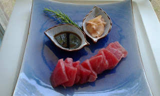 You can see the reflection of my pine trees in the soy sauce. How zen. |